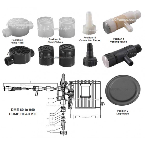 Pump Head Kit (Includes head, diaphragm, backplate, suction, discharge and venting valves, connection pieces)DME60 pumpSpring-loaded valve