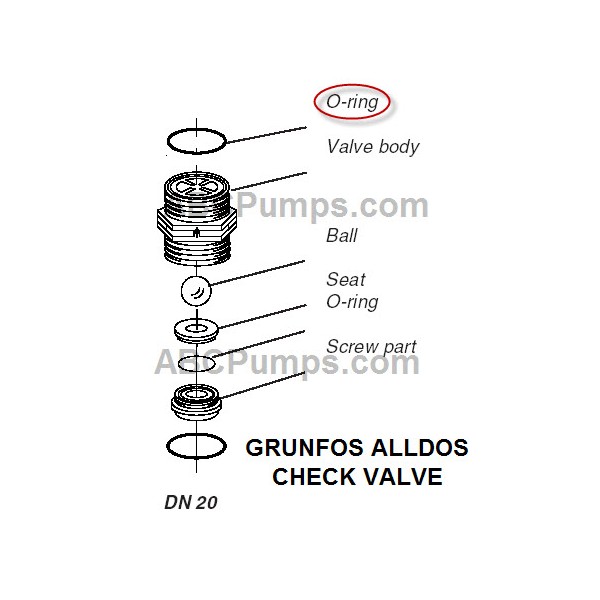 O-ring - Valve DN20 PTFE Coated/viton 35.2x28.2x3.5mm. Alldos 52.141-2